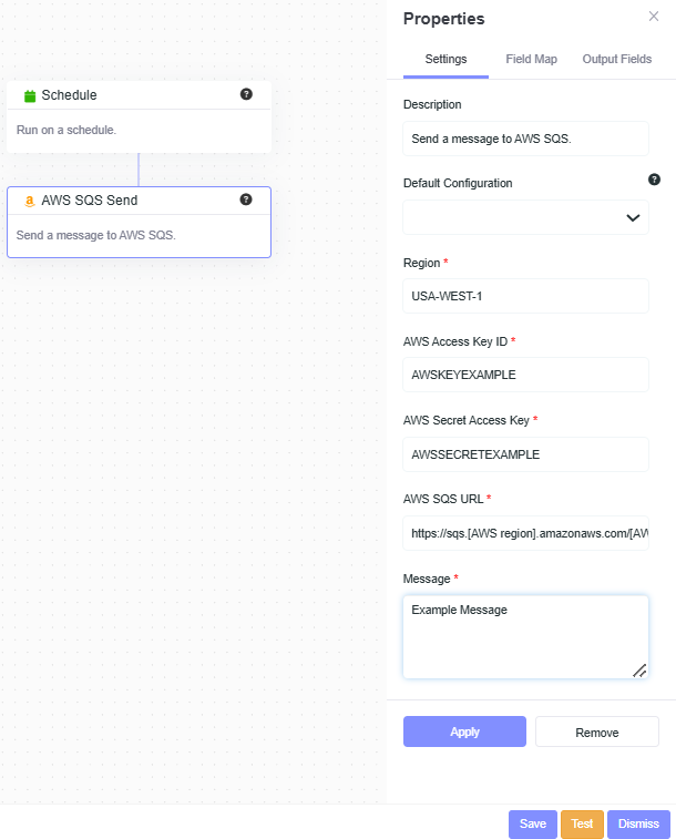- Description: Send a message to AWS SQS.