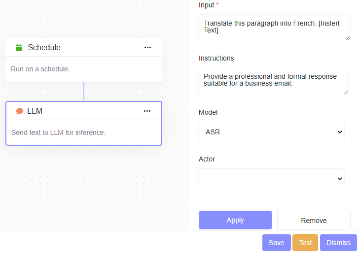 - Description: Send text to LLM for inference.