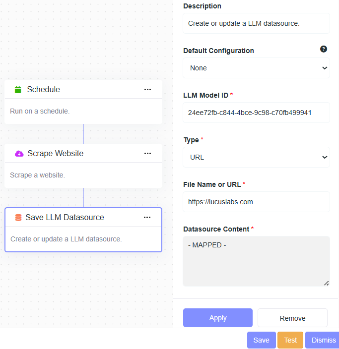 - Description: Create or update a LLM datasource.